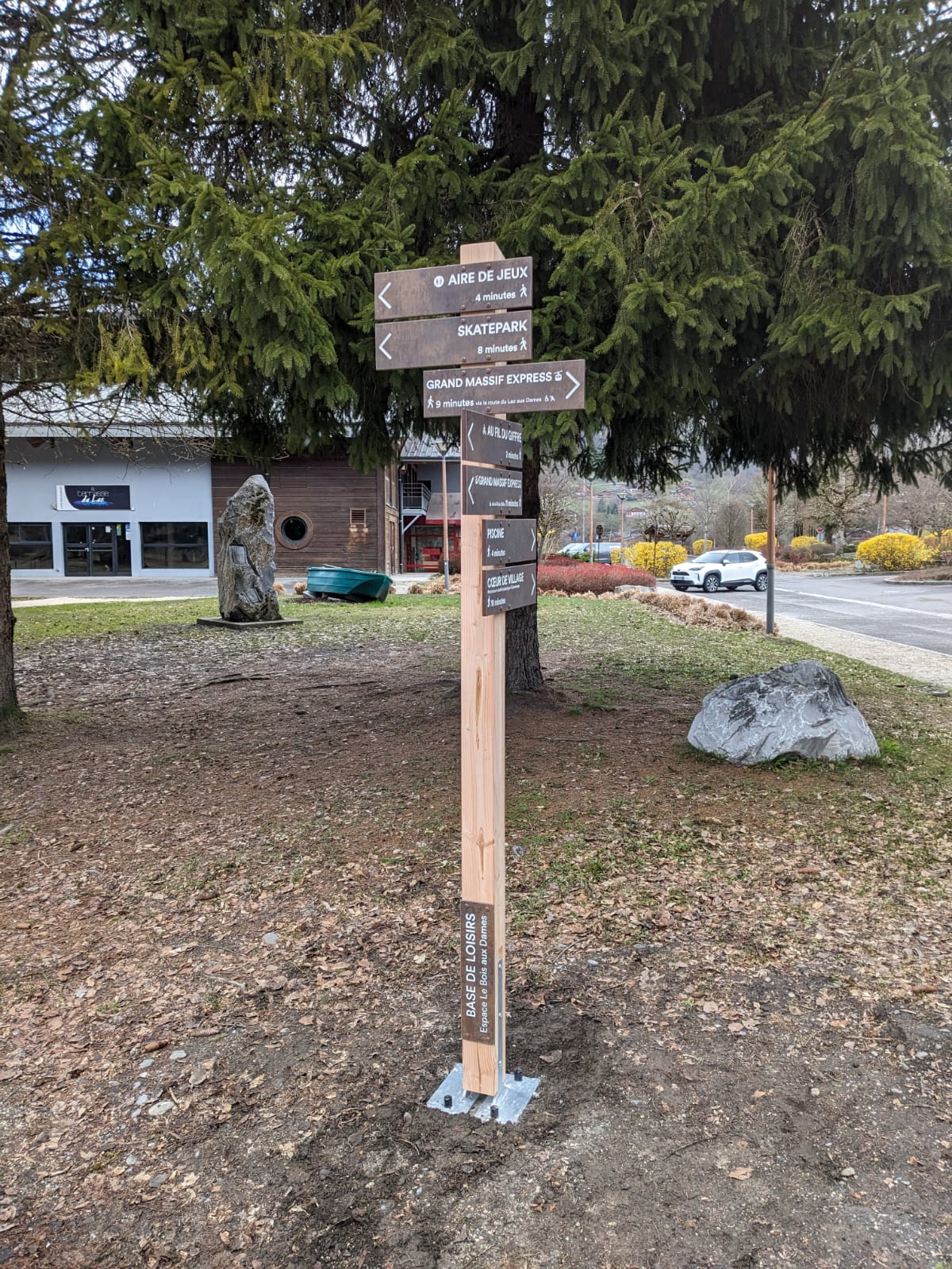 La fabrication des structures a été confiée à l’entreprise Pic Bois, basée à Brégnier-Cordon (01) et certifiée ISO 14001 et PEFC. La pose est réalisée par la société Azimut Signalétique.