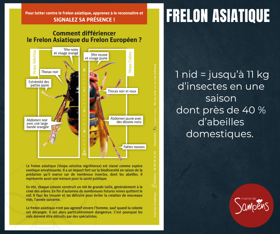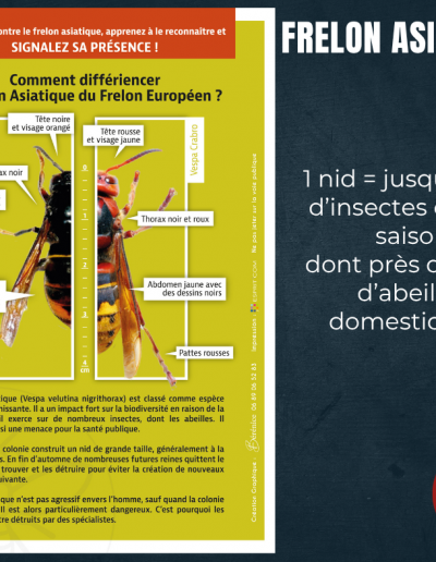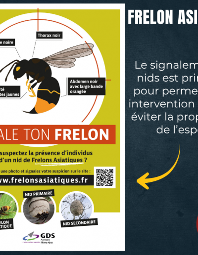 Depuis plusieurs années, la présence du frelon asiatique ne cesse d’augmenter, comme partout sur le territoire national. Classé espèce exotique envahissante depuis le 22 janvier 2013, il représente une véritable menace pour la biodiversité, et en particulier pour les abeilles.